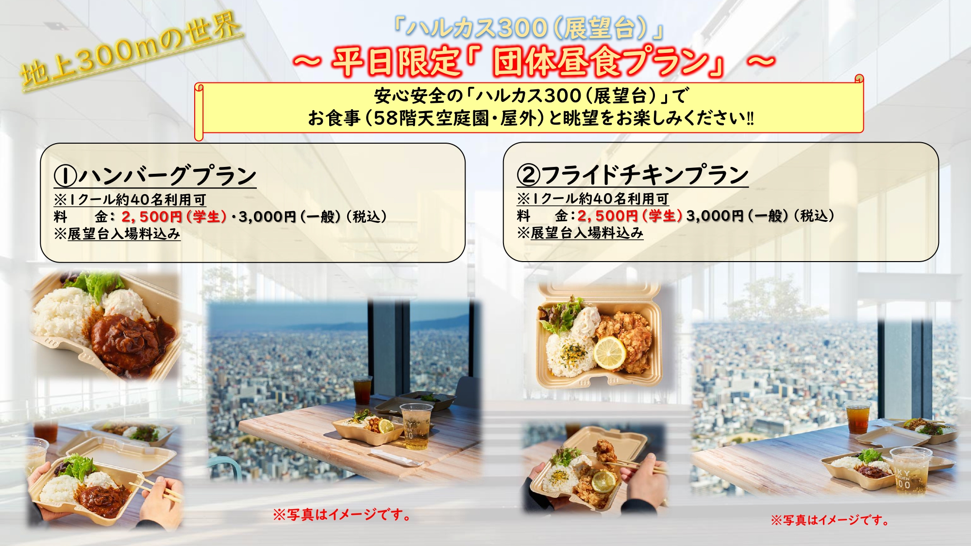 詳細はハルカス300団体予約センター06(6621)0319まで。(年中無休・10:00~17:00)
